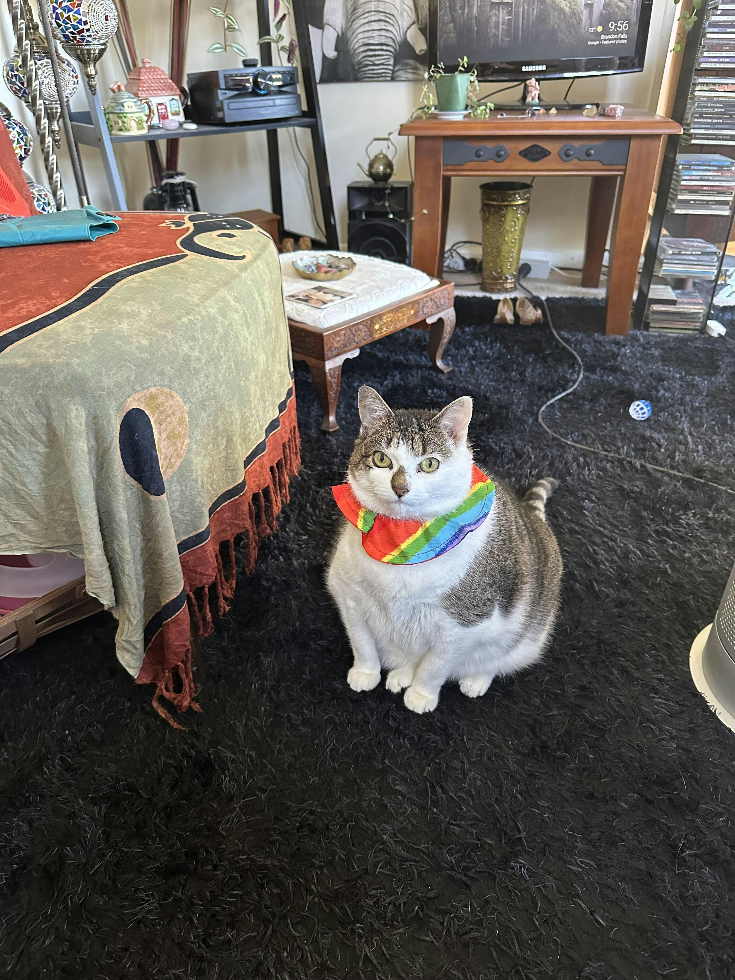 Bird Warning Cat Collar Cover | Rainbow (Long Fur / Extra Visibility)