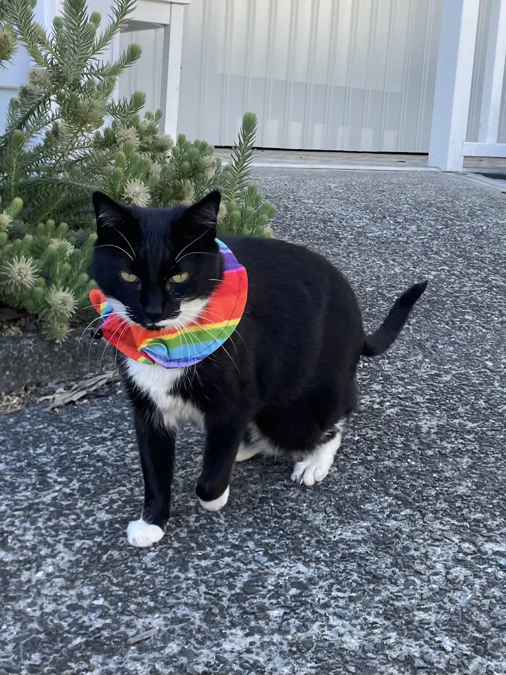 Bird Warning Cat Collar Cover | Rainbow (Long Fur / Extra Visibility)